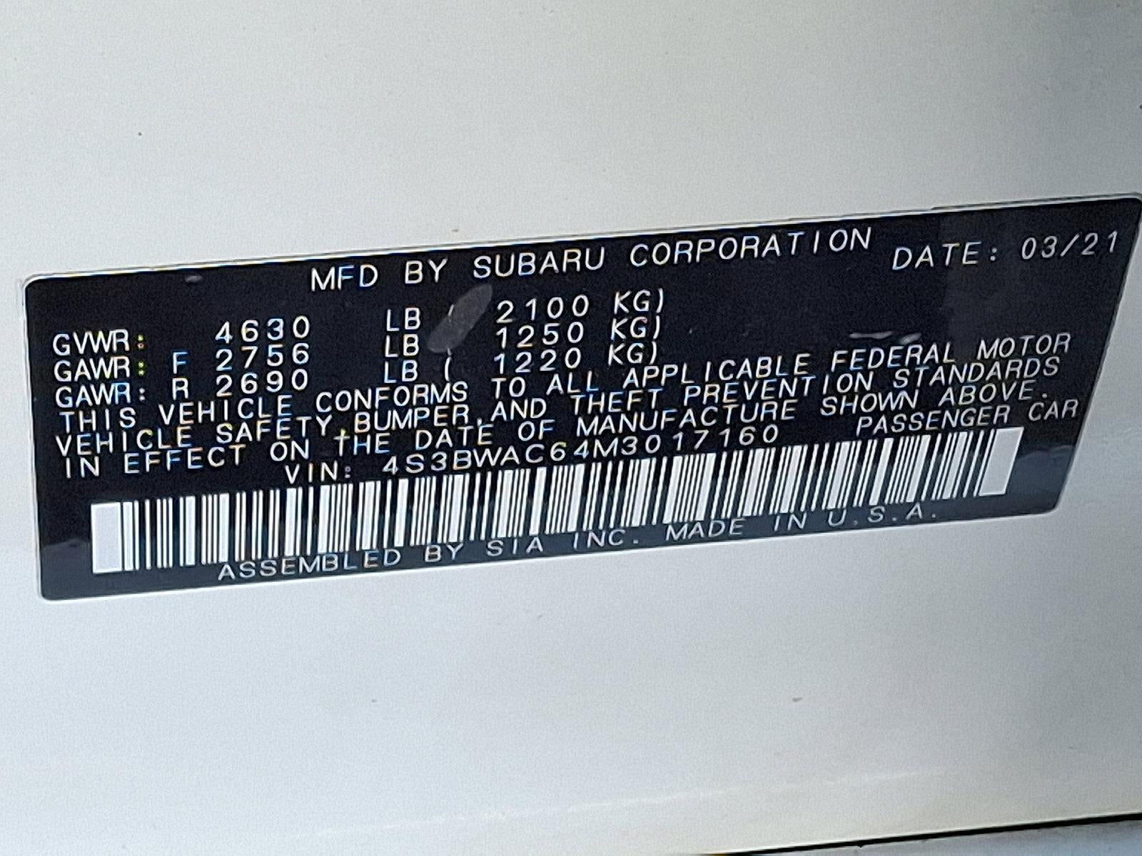 2021 Subaru Legacy Premium AWD 2.5L 4-Cylinder DOHC 16V Recent Arrival! 6 Speakers, All-Weather Floor Liners, Auto High-beam Headlights, Auto-Dimming Mirror w/Compass & HomeLink, Exterior Parking Camera Rear, Heated door mirrors, Heated Front Bucket Seats, Leather Shift Knob, Leather steering wheel, Power door mirrors, Power driver seat, Radio: Subaru STARLINK 11.6" Multimedia Plus Sys, Remote keyless entry, Splash Guards, Split folding rear seat, Standard Model, STARLINK/Apple CarPlay/Android Auto, Wheels: 17" x 7.5J Aluminum-Alloy Black.