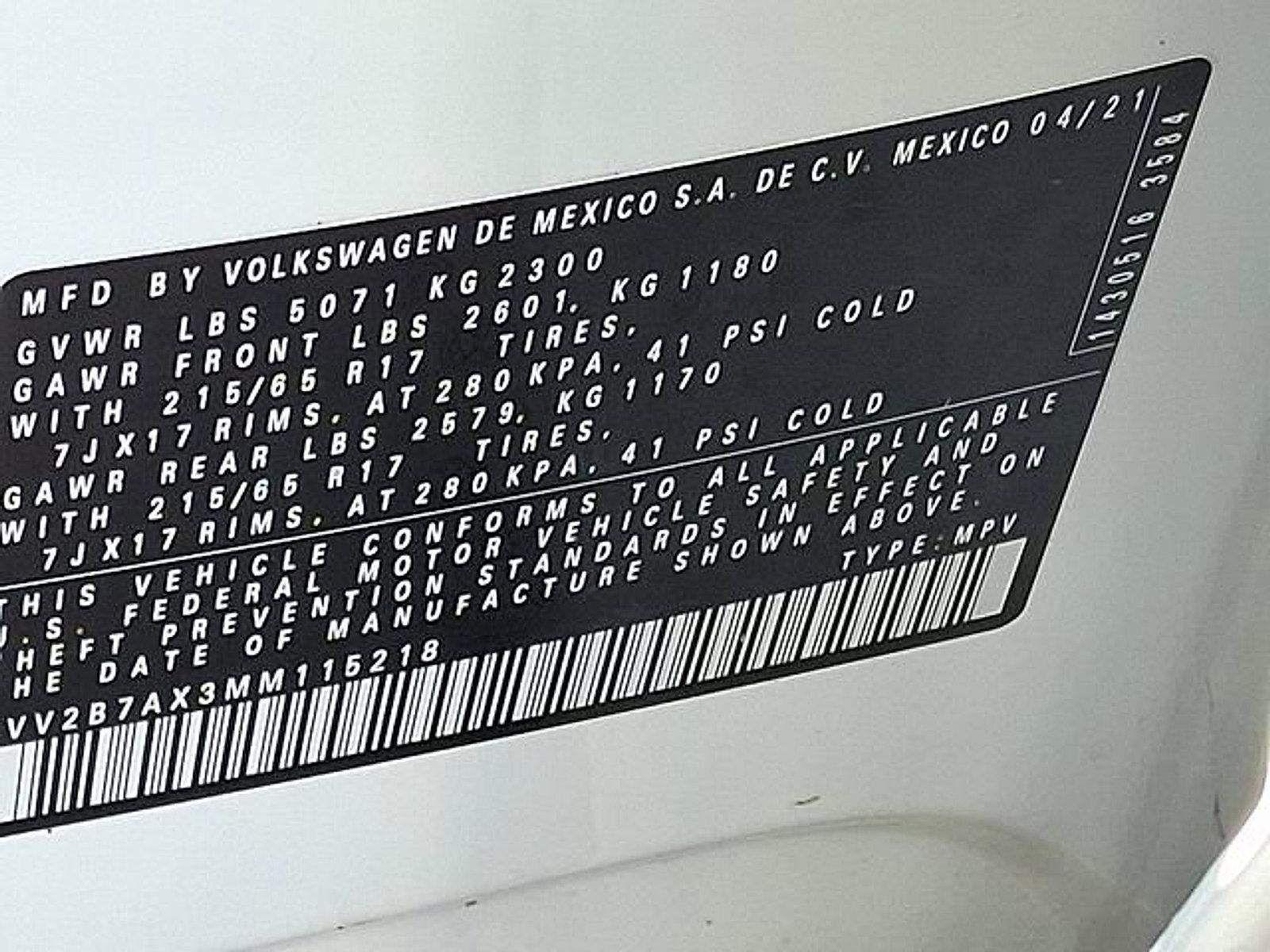 - Radio: MIB3 Composition Media AM/FM/HD -inc: 8" touchscreen, WMA/MP3/FLAC player w/USB-C, voice control, 6-speaker sound system, wireless inductive charger (for compatible devices), App-Connect smartphone integration (w/Apple CarPlay, Android Auto and MirrorLink) via USB, Wireless App-Connect smartphone integration (for compatible devices w/multi-phone pairing capability), capability for in-vehicle 4G LTE enabled Wi-Fi (cellular data plan required; includes limited trial), capability for VW Car-Net services (capabilities for certain services vary; requires enrollment or subscription), Bluetooth® connectivity (for compatible devices) and SiriusXM w/360L (w/3-month All Access trial; 360L services require acceptance of Car-Net terms)