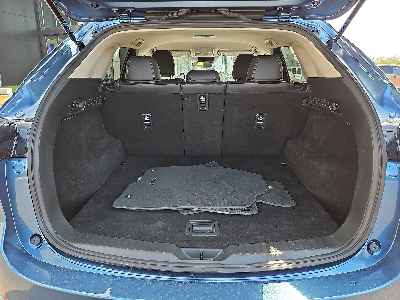 Step inside and you'll be greeted by a wealth of premium features, from the leather-wrapped steering wheel and shift knob to the heated front bucket seats. The intuitive Mazda infotainment system with voice command, Apple CarPlay, and Android Auto integration keeps you connected and entertained on the go. And with a spacious and versatile cargo area, this CX-5 is ready to accommodate all your adventures.